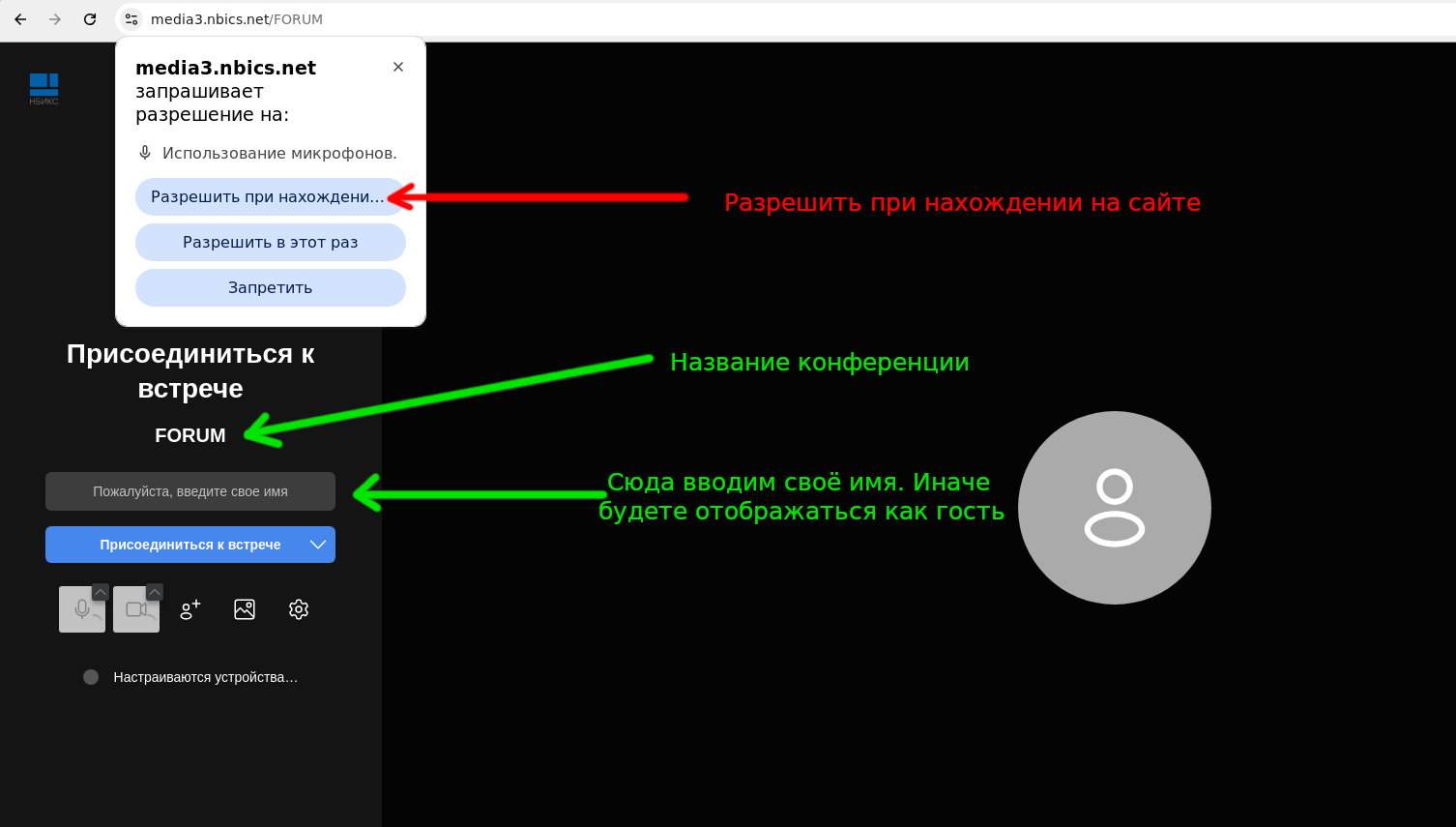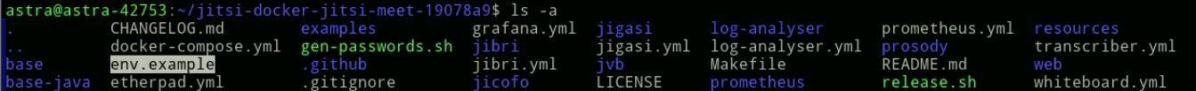 Установка Nginx Proxy Manager Первым делом устанавливаем сервис Nginx Proxy Manager. Ссылка на инструкцию по установке NPM: Установка NPM ======================================================= Начальные настройки С помощью следующей команды скачиваем последний релиз набора конфигураций для установки Jifsi в Docker: wget $(curl -s https://api.github.com/repos/jitsi/docker-jitsi-meet/releases/latest | grep 'zip' | cut -d\" -f4) В выводе будет показан процесс скачивания репозитория с GitHub. В конце появится примерно такая строка: 2024-11-15 17:32:48 (125 KB/s) - «stable-9823» сохранён [381175] Нам важно то, что в кавычках, в данном случае это stable-9823 (цифры - это номер сборки, с течением времени этот номер увеличивается, поэтому следующий скачаннй релиз может быть с другим номером) stable-9823 - это название архива с репозиторием, и его нужно распаковать. Распаковываем так: unzip stable-9823 После распаковки нужно зайти в текущий каталог и посмотреть название распакованного каталога. Введём команду: ls Среди других каталогов и файлов обратим внимание на следующий каталог: jitsi-docker-jitsi-meet-19078a9 Это название состоит из неизменяемой части (jitsi-docker-jitsi-meet-), и части с 16-ричным кодом (в данном случае это 19078a9) Правая часть (с кодом) будет другой после каждого обновления репозитория разработчиками, поэтому ориентируемся на неизменную часть названия. Далее копируем полное название каталога и переходим в него: cd jitsi-docker-jitsi-meet-19078a9 Посмотрим, что есть в этом каталоге, с помощью команды: ls -a Вывод будет таким: [image: 1764662963286-jitsi.jpg] Среди каталогов и файлов выделен файл env.evample Это файл с параметрами, в данном случае он не предназначен для работы, так как Docker его не распознает. Распознаваемый Докером файл должен называться .env Поэтому копируем содержимое данного файла в новый файл с именем .env Оставшийся файл нужен для восстановления, в случае неправильных настроек. Команда копирования: cp env.example .env Снова вводим команду: ls -a И видим, что появился файл .env [image: 1764662990120-jitsi2.jpg] В этом файле {.env} есть строки, задающие пароли для некоторых компонентов Jitsi, а точнее для функций этих компонентов. Сейчас переменные присуствуют в файле .env, но значения (пароли в данном случае) у них пустые. Посмотрим содержимое файла командой: nano .env И прокрутим текст вниз до отображения этих параметров: [image: 1764663014478-jitsi3.jpg] Как видим, значения действительно пустые. Самостоятельно пароли туда не будем вводить, а используем специальный скрипт. Файл со скриптом называется gen-passwords.sh Он находится в том же каталоге с репозиторием, где мы сейчас находимся. Код скрипта можно посмотреть, но сейчас важно его просто запустить. Выйдем из программы nano и запустим скрипт следующей командой: bash gen-passwords.sh Снова откроем файл: nano .env Прокрутим текст до тех же параметров, и видим вот что: [image: 1764663037021-jitsi4.jpg] Таким образом, скрипт автоматически сгенерировал пароли для нужных параметров. Генерация происходит случайным образом, поэтому не стоит опасаться, что эти пароли будут генерироваться всегда одинаково. Выходим из программы nano (клавиши Ctrl-X) Выходим из каталога с репозиторием на уровень выше: cd .. Теперь нужно создать каталоги на хостовой системе для конфигурационных файлов и других данных, которые будут наполняться во время работы Jitsi. Эта команда создаёт каталог .jitsi-meet-cfg (его название имеет вначале точку, а значит этот каталог скрытый), а также несколько подкаталогов внутри него. mkdir -p ~/.jitsi-meet-cfg/{web,transcripts,prosody/config,prosody/prosody-plugins-custom,jicofo,jvb,jigasi,jibri} Команда созда
