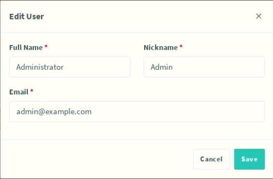 Логин: admin@example.com Пароль: changemeПосле входа сразу будет предложено сменить имя, ник, и адрес почты. Имя и ник позволяется оставить таким как есть, а адрес почты менять обязательно. Адрес не проверяется на существование, поэтом можно вписывать любой. После замены входных данных, нажимаем Save.